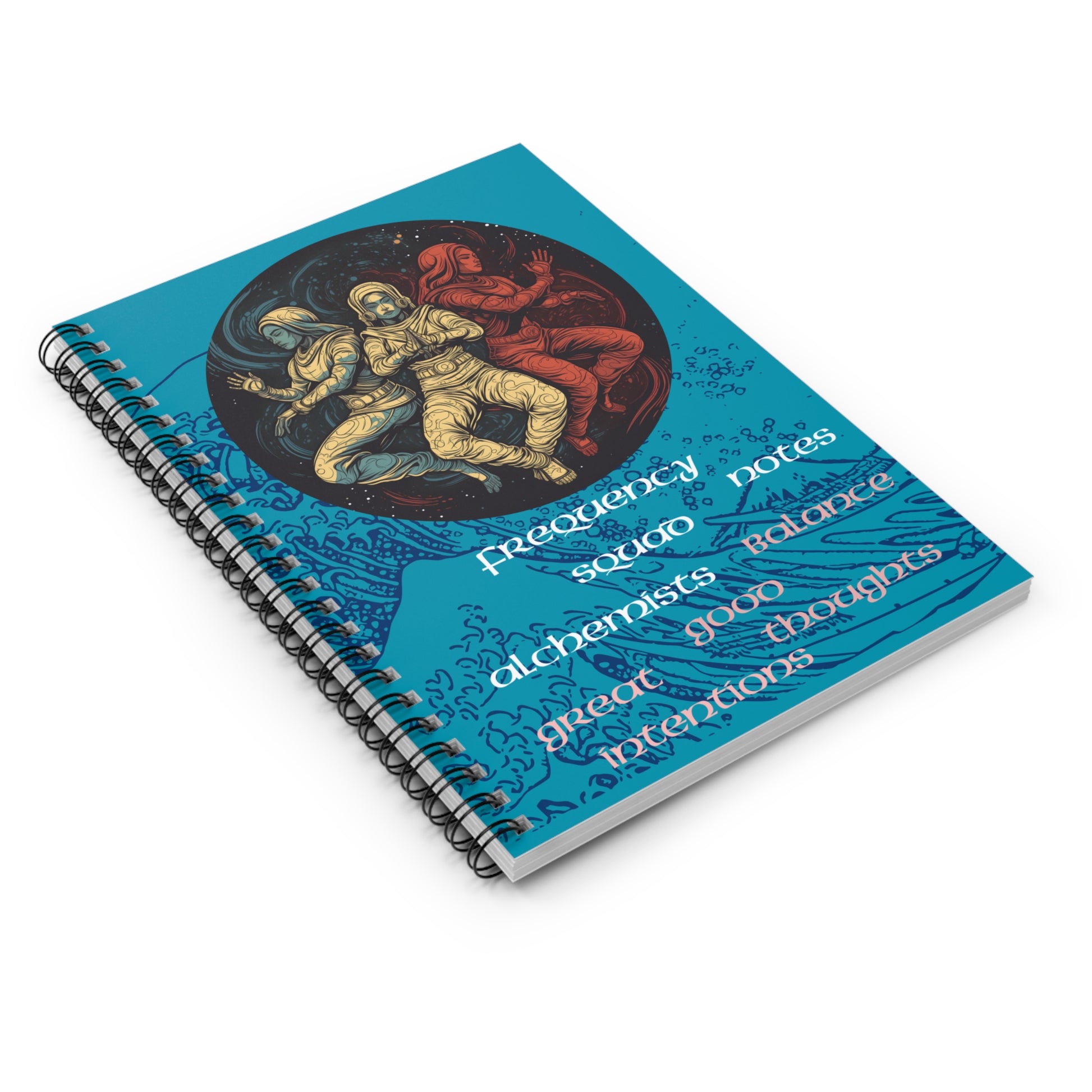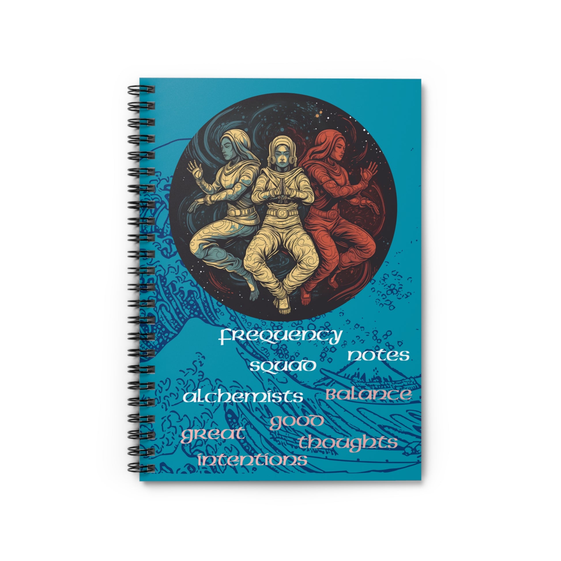 The Frequency Alchemy Spiral Notebook gives off a mystical and cosmic vibe, perfect for those who love astrology and spiritual themes. It is ideal for journaling, note-taking, and balancing your focus on creating good vibrations and intent. This notebook is relevant for back to school, birthdays, and everyday use. Enjoy!