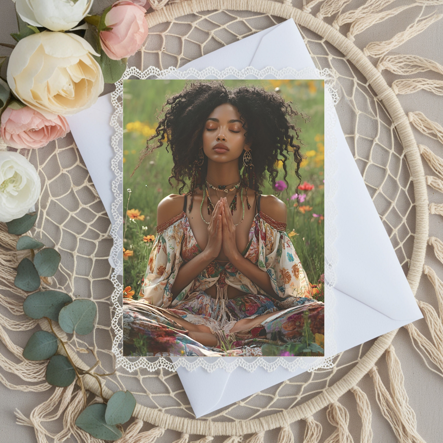 Meditation self-care greeting cards that provide a sense of peace and tranquility. A great reminder to be kind to oneself first! Perfect for individuals looking to send thoughtful messages and positive vibes to loved ones. Ideal for occasions such as birthdays, weddings, thank you notes, a spa day and more. Enjoy!